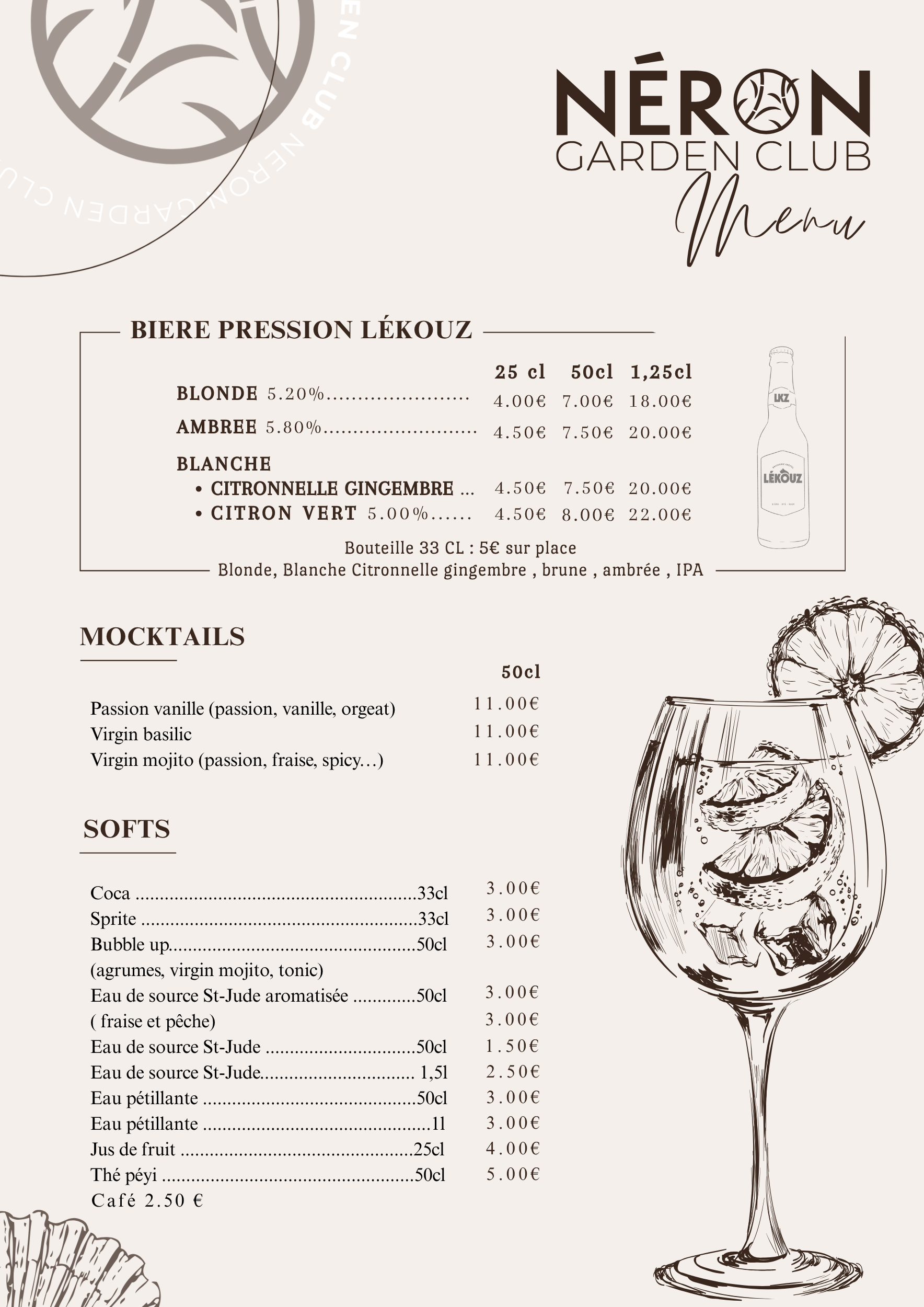 Le Néron Garden Club ne se contente pas d’être un bar ; c’est un lieu de vie et de célébration. Des concerts live, des ateliers thématiques et des réceptions privées y sont organisés régulièrement, offrant à chacun une expérience unique dans un cadre verdoyant et historique.